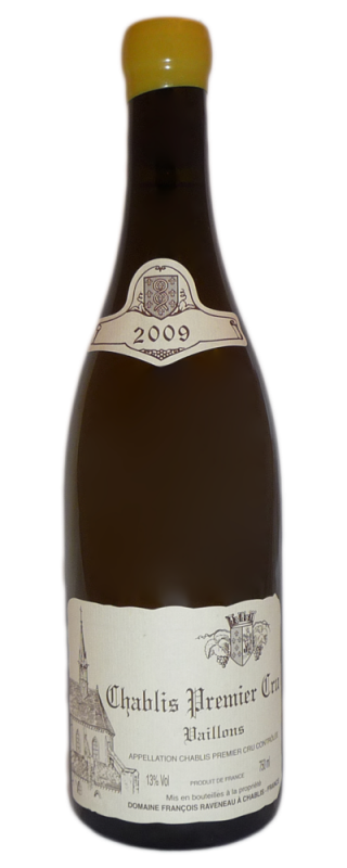 L'appellation Chablis, situé au nord de la Bourgogne près d'Auxerre, longe la petite rivière le Serein. Dès le 12ème siècle, les moines cisterciens travaillaient les vignes de Chablis. Le vignoble, couvrant plus de 4000 hectares, produit exclusivement des blancs secs, issus à 100 % du cépage Chardonnay. D'une manière générale, ce sont des vins frais, vifs, au nez très minéral. Les 1er Crus et les Grands Crus ont besoin de quelques années de garde afin de s'ouvrir : ils sont plus structurés, plus fins, plus subtils, avec une belle longueur en bouche. Ici le 1er Cru Vaillons, aux parfums de melon, d'abricot, avec des notes tropicales : charme, finesse, précision, c'est signé Raveneau..., dans un des plus grands millésimes du Domaine : 2009. Une bouteille qui approche doucement son apogée.
