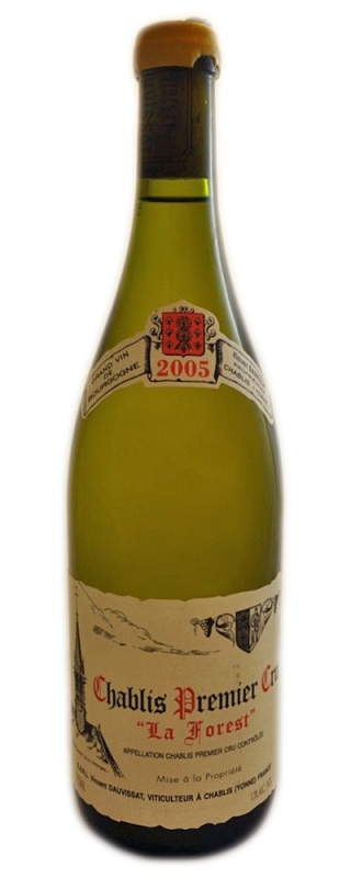 L'appellation Chablis, situé au nord de la Bourgogne près d'Auxerre, longe la petite rivière le Serein. Dès le 12ème siècle, les moines cisterciens travaillaient les vignes de Chablis. Le vignoble, couvrant plus de 4000 hectares, produit exclusivement des blancs secs, issus à 100 % du cépage Chardonnay. D'une manière générale, ce sont des vins frais, vifs, au nez très minéral. Les 1er Crus et les Grands Crus ont besoin de quelques années de garde afin de s'ouvrir : ils sont plus structurés, plus fins, plus subtils, avec une belle longueur en bouche. Ce Chablis 1er Cru La Forest Vincent Dauvissat 2005, dans l'un des millésimes de légende du Domaine, est un vin d'une harmonie et d'une classe rares : explosion aromatique (pomme verte, épices, zeste d'agrumes, pêche jaune, crème anglaise, citron), pureté, richesse, complexité, profondeur... En pleine apogée, un Chablis sensationnel, qui nous rapproche irrémédiablement des Grand Cru du Domaine...
