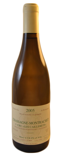 L'appellation Chassagne-Montrachet se situe à une altitude comprise entre 220 et 325 mètres, sur un vignoble de 305 hectares : 198 en blanc (dont 117 en 1er Cru) et 107 en rouge (dont 32 en 1er Cru). Tout au sud de la Côte de Beaune, les communes de Chassagne-Montrachet et Puligny-Montrachet abritent les plus grands vins blancs secs jamais produits : Montrachet et ses Grands Crus associés... Rares, sublimes, ils sont recherchés par tous les amateurs. Le Chassagne-Montrachet rouge, moins connu que les blancs, est un excellent vin, issu à 100 % du Pinot Noir : parfois austère jeune, il évolue vers des tannins soyeux et complexes. Les Chassagne-Montrachet blancs, composés exclusivement de Chardonnay, offrent des arômes d'aubépine, de chèvrefeuille, d'acacia, de noisette et de silex ; en vieillissant, ils acquièrent des notes de miel et de de poire. D'une manière générale, ce sont des vins très minéraux, moelleux et délicats. Les Chassagne-Montrachet blancs du Domaine Marc Colin et fils symbolisent tous pureté, finesse et délicatesse. Ce sont des vins blancs d'exception qui, à leur apogée (6/15 ans selon l'année) et dans les grands millésimes, s'approchent tout près du niveau des Grands Crus de Montrachet... Avec le Domaine Ramonet, Marc Colin et fils produit les plus grands Chassagne-Montrachet... en somme l'un des plus grands vins blancs du monde... Ici le climat Les Caillerets, situé au cœur du vignoble juste au dessus des Champs Gains, dans le plus grand millésime de Bourgogne Blanc de ces dernières décennies, avec 1996 : 2005.