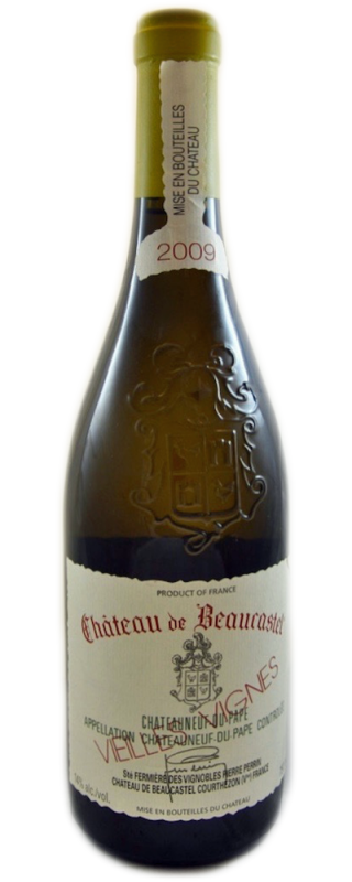 Appellation mythique située entre Avignon et Orange, Châteauneuf-du-Pape produit, sur un vignoble de plus de 3000 hectares, des vins reconnus dans le monde entier. Les bouteilles des meilleurs domaines ont incontestablement leurs places au coté des plus grands vins du monde, tant leurs dégustations évoquent plaisir et rareté... Les Chateauneuf-du-Pape rouge sont puissants, charpentés, amples et dotés d'une incroyable richesse aromatique (découlant des nombreux cépages utilisés : Grenache, Syrah, Mourvèdre, Cinsault...). Grands vins de garde par excellence, leurs complexités s'accentuent avec les années. L'appellation produit également de superbes vins blancs (moins de 10 % de l'AOC) : riches, aromatiques, ils sont tout en rondeur et vieillissent très bien. Issu exclusivement de très vieilles vignes de Roussane, le rarissime Châteauneuf-du-Pape Vieilles Vignes Château de Beaucastel blanc possède des arômes de fleurs blanches, de fruits exotiques, de pêches de vigne, de miel, de lavande et d'orange. Parfaitement équilibré, tout en finesse, un vin d'une texture et d'une richesse incroyable. Une bouteille de légende qui entre doucement dans son apogée. Gratifiée de la note ultime, 100/100, par Robert Parker, l'année 2009, un des plus grands millésimes du Château, glorifie cette cuvée Vieilles Vignes, déjà exceptionnelle habituellement. Le plus grand vin blanc produit par la famille Perrin et l'un des plus grands vins blancs de tous les temps...