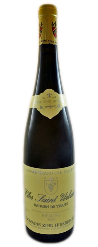 Le Riesling, cépage le plus connu d'Alsace, développe un bouquet d'une grande finesse : des arômes minéraux (pierre à fusil, silex), de fruits (citron, pamplemousse, pêche, poire) et de fleurs (fleurs blanches, tilleul). Le terroir classé Grand Cru, Rangen, le plus méridional de l'Alsace, couvre l'intégralité des deux communes sur lesquelles ils se trouvent : Thann et Vieux Thann. Le travail de la vigne y est extrêmement compliqué à cause de la pente vertigineuse... Clos Saint Urbain se situe autour de la petite chapelle du même nom. Grand millésime du Domaine Zind Humbrecht, ce Riesling Rangen de Thann 2009, aux arômes typiques de pierre à fusil et de roches volcaniques, est ample, pur, très minéral et de grande garde. Profondeur, longueur et équilibre parfait, font de ce vin l'un des plus grands vins blancs du monde...