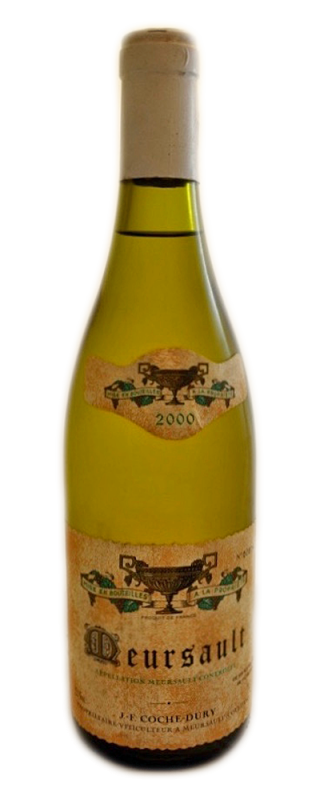 L'appellation Meursault se situe autour du village éponyme, entre Puligny-Montrachet et Volnay. Son vignoble couvre 396 hectares : un peu plus de 382 hectares en Chardonnay, dont près de 105 en 1er Cru, et une petite production de rouge (un peu plus de 13 hectares de Pinot Noir, dont presque 3 classé en 1er Cru). Sur des notes d'amande, de noisette, de silex, Meursault offre des vins blancs riches, gras, structurés, soyeux : un mélange de fraîcheur, de minéralité et d'onctuosité. La production est importante, par conséquent le niveau est naturellement disparate : les meilleurs domaines (Coche-Dury, Comtes Lafon, Roulot, Leroy/d'Auvenay, Ente, Potinet-Ampeau) produisent des vins d'exception qui figurent parmi les plus grands blancs du monde, en compagnie des Grand Cru de Montrachet et des Corton-Charlemagne. Les meilleurs climats, sublimés par les plus grandes signatures de Meursault, ont un potentiel de garde exceptionnel (15/20 ans minimum). Tout a été dit dans la présentation de ce Domaine, devenu la légende de la Bourgogne... Le fait que ses simples Bourgogne blanc rivalisent avec des Grand Cru de la Côte de Beaune laisse imaginer la suite... Le Domaine Coche-Dury offre les plus grands Meursault du monde, quel que soit le climat... L'impression unique, surréaliste, que les vins sortent tout droit d'une source sur les collines qui surplombent le village de Meursault... Ici le Meursault 2000 à maturité, et pour longtemps : minéral, intense, flamboyant ; de merveilleux arômes de silex, de citron, de noisette, de clou de girofle, et quelques subtiles notes de fruits tropicaux. Le seul producteur de Bourgogne blanc à mettre autant de puissance dans ses vins sans leur retirer une once d'élégance... Si beau, si grand...